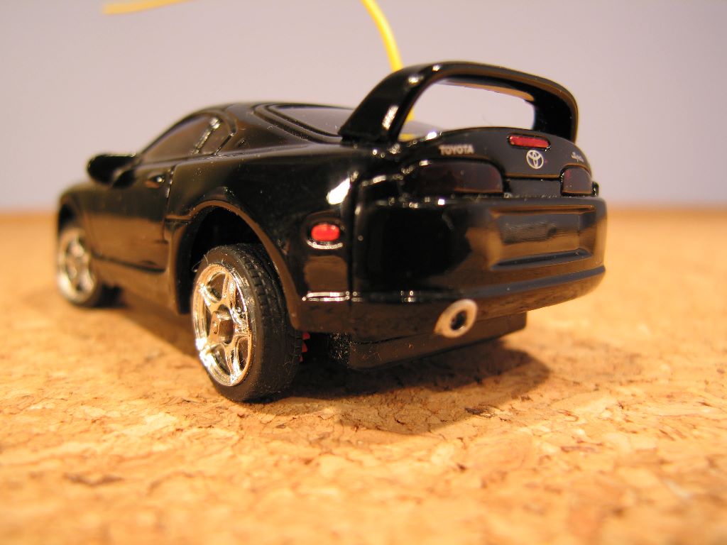 1/50 Microz and Microz GT Review NOTE: The Source CC (Circuit City) has these on Clearance for $9.99 with lots of parts and styles to choose so if interested act fast, also I think these are only available in Canada! The main difference between the MicroZ and the MicroZ GT is that the The MicroZ GT are Digital Proportional for a more precise steering and they have functioning head and taillights. Both the MicroZ and the MicroZ GT feature a front spring suspension but GT with the Digital Proportional steering is a much better choice. The remote control unit has a modular two-piece customizable pistol grip, perfect for left or right-handed drivers, simply snap the 'trigger' section on the other side for Left-handed users. Now Digital Proportional as touted by MicroZ GT is not really comparable to a Micro-T or a Xmod but it does offer decent steering control that is fairly responsive. I admit it lags a bit but considering the size of these MicroZ I'm amazed they can offer Digital Proportional steering period. Here we have the FORD MUSTANG GT, the body styles available are quite varied and the detail is very good considering the small scale the MicroZ uses (1:50) One of the items I was impressed with was the use of small metal lug-nuts to hold the wheels to the axle. Remember that at such a small scale the bodies are slightly off in scale as all body styles must fit a predetermined size, unlike an Xmod or Epoch you have no adjustments that can be made to the wheelbase. Here you can see the top of the main PCB board, note the connector in the middle for the headlight/tail-lights this means we are looking at the MicroZ GT version. Towards the rear you can see the mini-motor that power the car it's a 'Pager' motor otherwise known as a 'Coreless' motor. Corless refers to the fact the windings themselves form the armature within the motor requiring no core as a traditional motor does. I'm not sure what Rpm the stock motor turns at but the red motor pictured is the upgrade motor and it's rated at 30,000Rpm and the gearing is a 9.58:1 ratio (motor turns 9.58 times for every 1 turn the wheel makes). As for speed suffice to say fast enough to make control difficult but slow compared to an Xmod..... Another 'Coreless' motor powers the steering section and you can see the positioning encoder that determines the correct location the wheels should be at when you twist the steering control. Notice the springs located on the wheel control arms these are the front suspension mentioned earlier. The suspension is only on the front wheels and it helps keep the wheels on the ground but don't expect too much from the suspension as the rear has none and the rear also has no transmission which means both wheels propel the car forward. Once we have the PCB board opened up it reveals the hidden power source a NiMh (Nickel-metal Hydride) rated at 2.4Volts and 120mah (mAh stands for Milliamp Hour, a technical term for how much power a particular battery will hold). This battery that can power the MicroZ for upwards of 20 minutes when you follow the charging instructions a little further down. The photos below do not represent all the models available in fact they only show the limited selection I currently have so have a look and remember you can click on any photo to enlarge it.